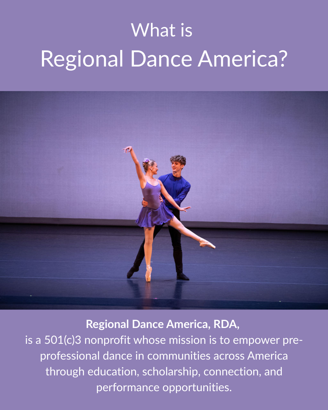 We are the host rehearsal studio for the Etudes Ballet Company, a 501c3 nonprofit ballet company for dancers ages 8+, and a new member company of Regional Dance America (RDA) in the MidStates Region. RDA is a 501c3 nonprofit whose mission is to empower pre-professional dance in communities across America through education, scholarship, connection and performance opportunities.
